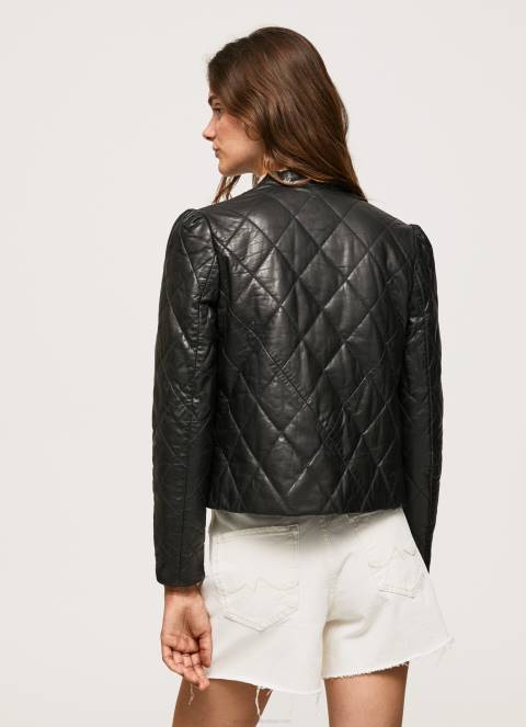 žene crno dijamantna kožna jakna Pepe Jeans JZ8H140
