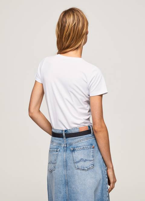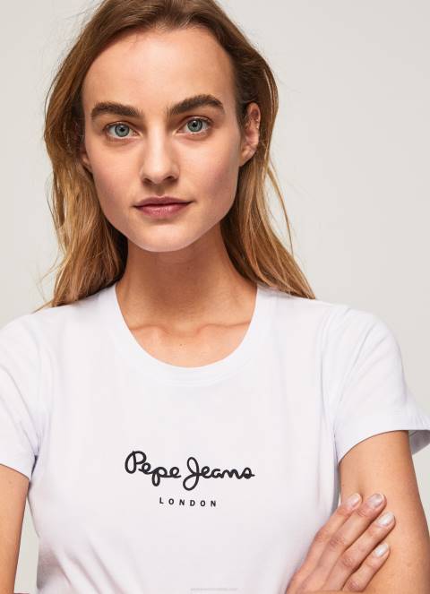 Dom| žene| odjeća| majice kratkih rukava| žene bijela majica s osnovnim logom Pepe Jeans JZ8H416