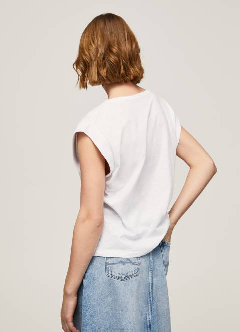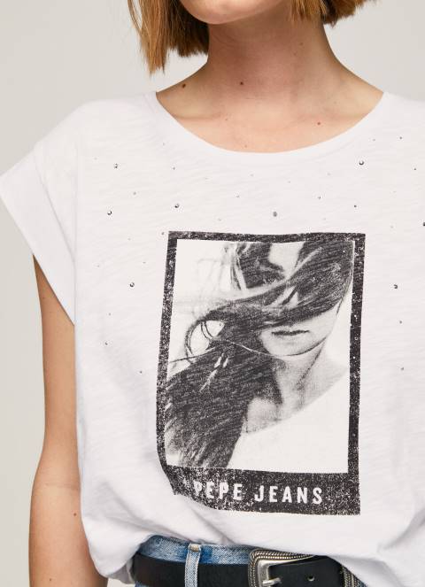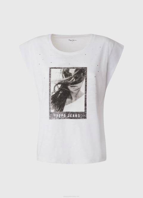 Dom| žene| odjeća| majice kratkih rukava| žene bijela majica s printom fotografija Pepe Jeans JZ8H387