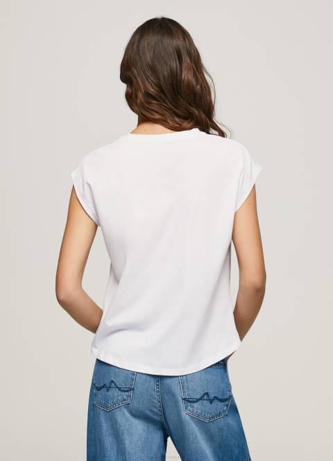 Dom| žene| odjeća| majice kratkih rukava| žene bijela majica s printom fotografija Pepe Jeans JZ8H410