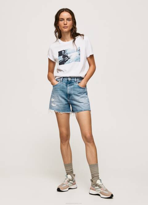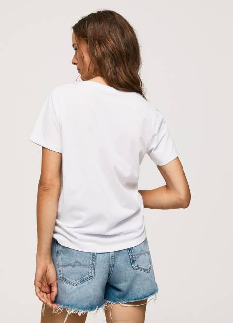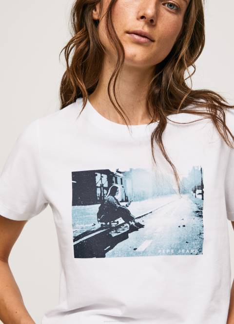 Dom| žene| odjeća| majice kratkih rukava| žene bijela majica s printom fotografija Pepe Jeans JZ8H429