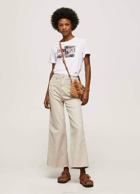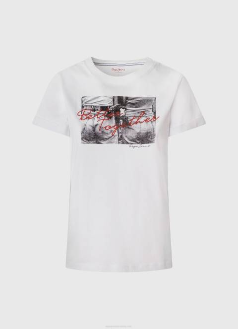 Dom| žene| odjeća| majice kratkih rukava| žene bijela majica s printom fotografija Pepe Jeans JZ8H432