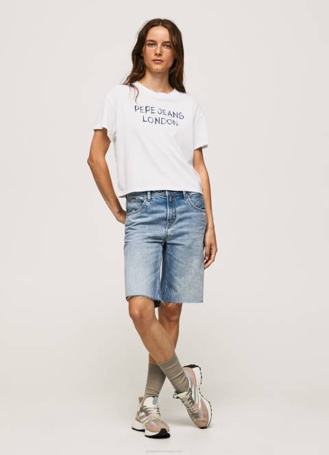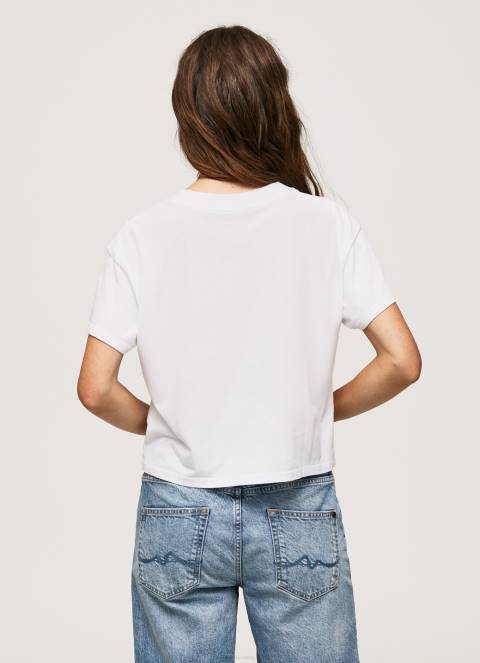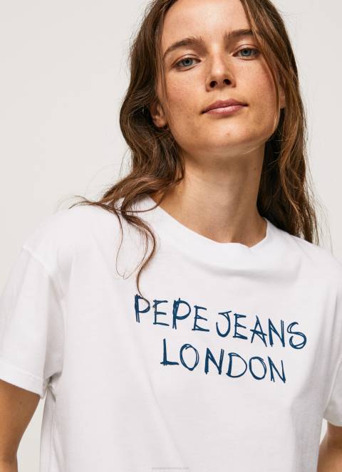 žene bijela majica s printom logotipa Pepe Jeans JZ8H378