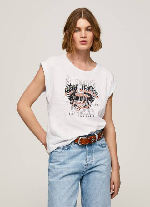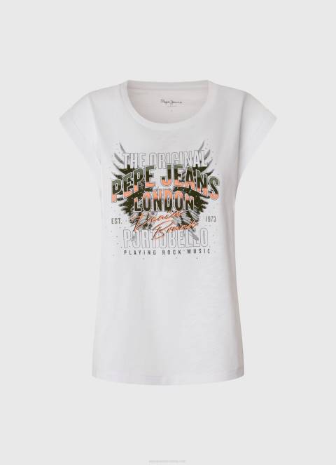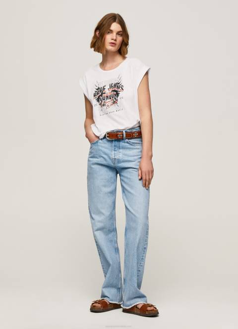 žene bijela majica s printom logotipa Pepe Jeans JZ8H445