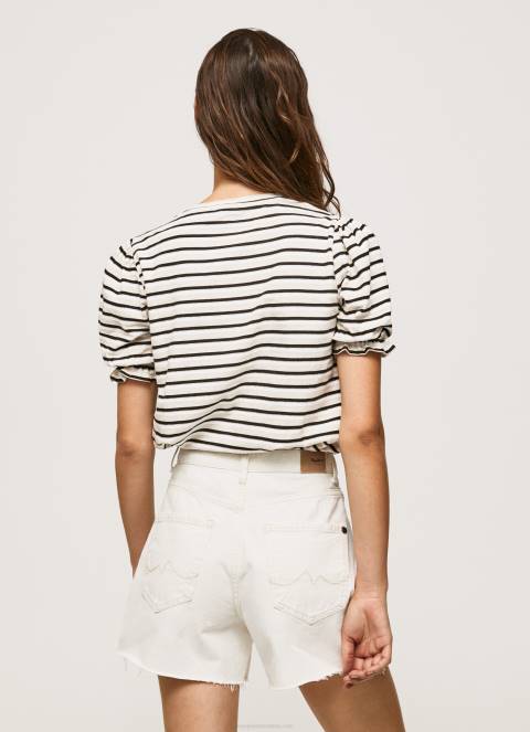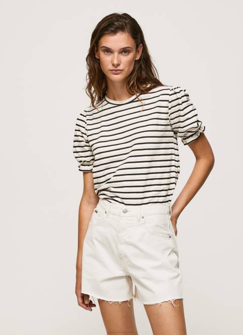 Dom| žene| odjeća| majice kratkih rukava| žene crno prugasta majica s volanima Pepe Jeans JZ8H391