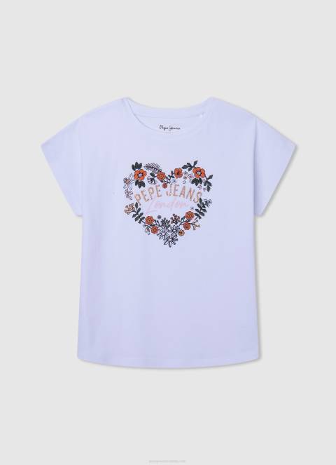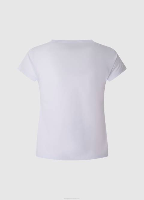 djevojka bijela jednobojna majica s printom Pepe Jeans JZ8H1453