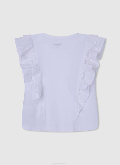 djevojka bijela majica s duplim volanima Pepe Jeans JZ8H1482