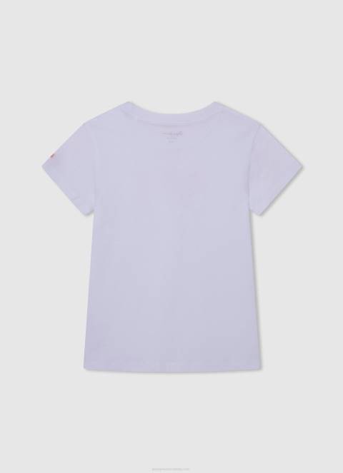 djevojka bijela majica s printom logotipa Pepe Jeans JZ8H1455