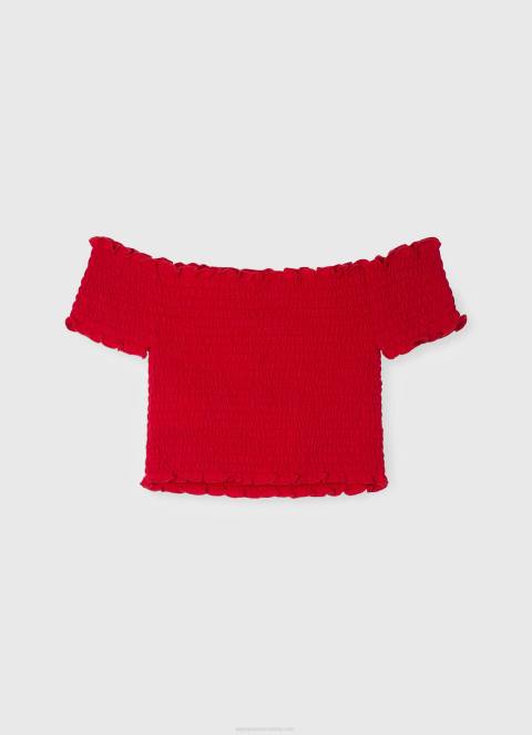Dom| djevojke| odjeća| djevojka Crvena nabrani top kratkih rukava Pepe Jeans JZ8H1424